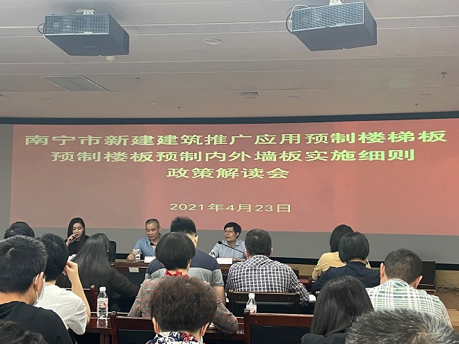 為加深各單位對推廣應(yīng)用“三板”實施細則的了解及應(yīng)用,2021年4月23日,南寧市住房和城鄉(xiāng)建設(shè)局在南寧市住房城鄉(xiāng)建設(shè)局會議室召開了《南寧市新建建筑推廣應(yīng)用預(yù)制樓梯板、預(yù)制樓板、預(yù)制內(nèi)外墻板實施細則》政策解讀會,我公司委派技術(shù)部副主任胡興榮參加此會議。