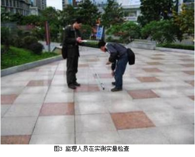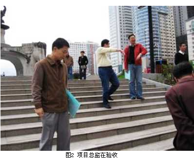 我公司負(fù)責(zé)該工程施工階段全過程監(jiān)理。工程內(nèi)容包括①土建維修,它又包括石材鋪裝、路面、噴泉水溝蓋板等維修;②亮化維修;③噴泉水下燈維修;④石凳設(shè)置。為更好地完成監(jiān)理工作,我公司派出了素質(zhì)好、能力強(qiáng)的監(jiān)理人員組建項(xiàng)目監(jiān)理處,他們認(rèn)真負(fù)責(zé)、踏實(shí)工作,圓滿完成了監(jiān)理任務(wù),向政府和市民交出了一份滿意答卷。