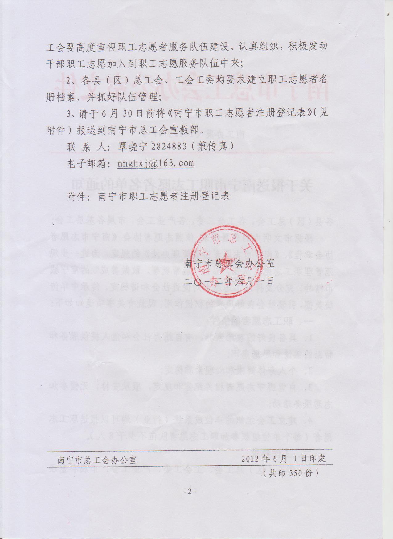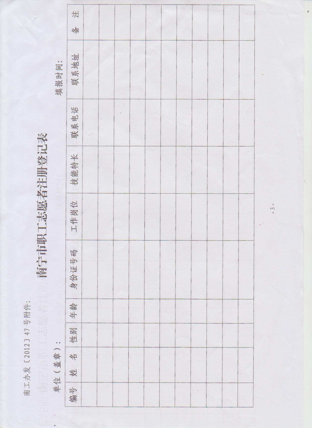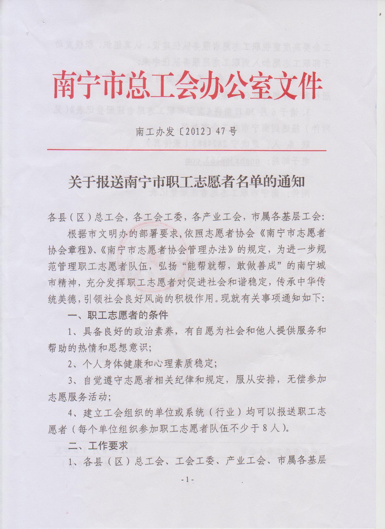 關于報送南寧市職工志愿者名單的通知(南工辦發(fā)[2012]47號)