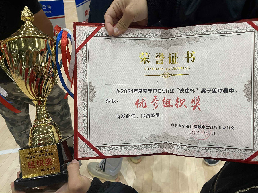 為進(jìn)一步提高黨員群眾的身體素質(zhì),豐富黨員群眾的體育生活,增強(qiáng)黨組織的凝聚力和戰(zhàn)斗力,2021年10月19日,中共南寧品正建設(shè)咨詢有限責(zé)任公司支部委員會、南寧品正建設(shè)咨詢有限責(zé)任公司籃球隊(duì)參加了中共南寧市住房城鄉(xiāng)建設(shè)行業(yè)委員會舉辦的“鐵建杯”男子籃球比賽,經(jīng)過拼搏,獲得第四名,并榮獲了“優(yōu)秀組織獎”稱號。