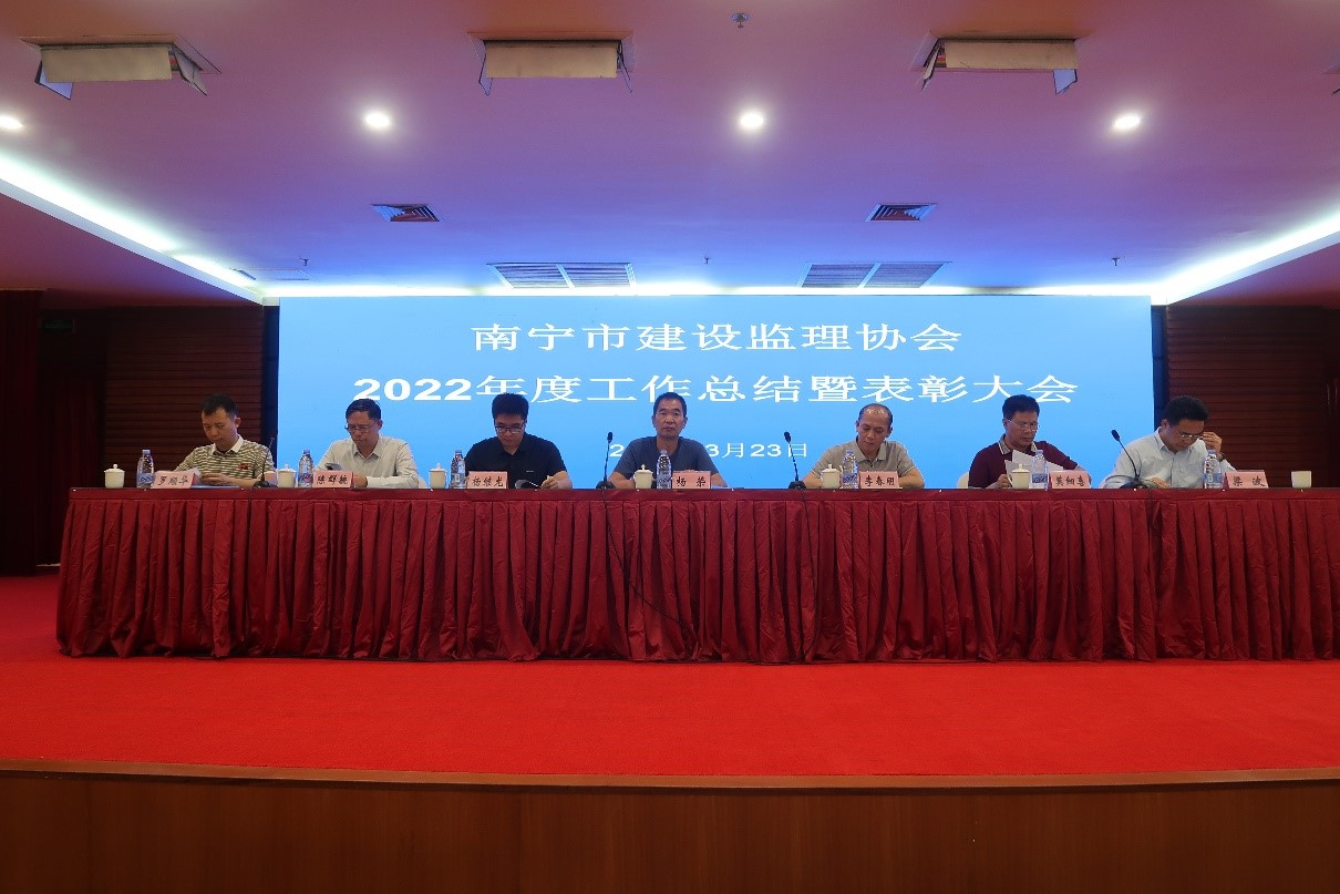2023年3月23日,南寧市建設(shè)監(jiān)理協(xié)會在南寧市桃源飯店舉行2022年度南寧市建設(shè)監(jiān)理協(xié)會工作總結(jié)暨表彰大會,南寧市住房和城鄉(xiāng)局房屋建筑質(zhì)量安全監(jiān)管科副科長楊繼龍、南寧市民政局社會組織管理科科長、四級調(diào)研員李春明、廣西建設(shè)監(jiān)理協(xié)會會長陳群毓等領(lǐng)導(dǎo)到會指導(dǎo)并講話。南寧市建設(shè)監(jiān)理協(xié)會會員單位參加會議。