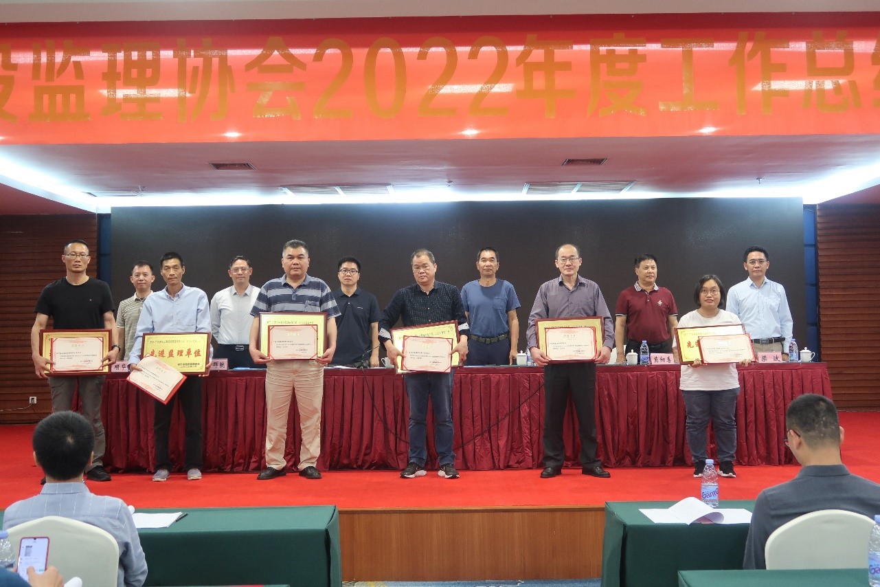 在2022年度南寧市建設(shè)監(jiān)理協(xié)會表彰儀式上,公司行政部主任代表南寧品正上臺領(lǐng)取南寧市建設(shè)監(jiān)理協(xié)會頒發(fā)的“2022年度誠信企業(yè)”和“2022年度南寧市先進(jìn)監(jiān)理單位”榮譽(yù)證書。南寧品正總監(jiān)理工程師姚思清、王騰龍、曾振華、張騰、盧國敏、曾鉦驊、林碧婷等7人榮獲2022年度“南寧市優(yōu)秀總監(jiān)理工程師”稱號,萬立名、劉建琨、莫志良、趙春燕、曹慶、盧軍、楊歡瑜等7人榮獲2022年度“南寧市優(yōu)秀監(jiān)理工程師”稱號,并受到表彰。